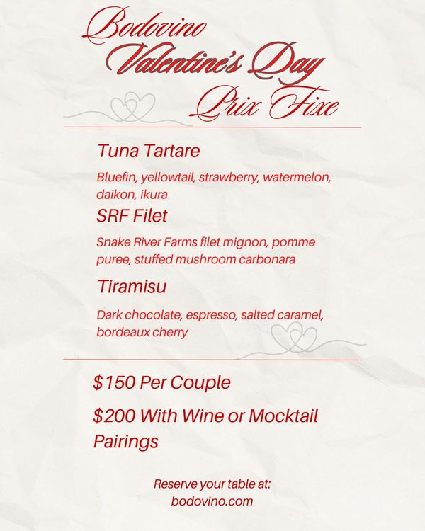 7:30 pm SEATING - Valentine PAIRING Dinner